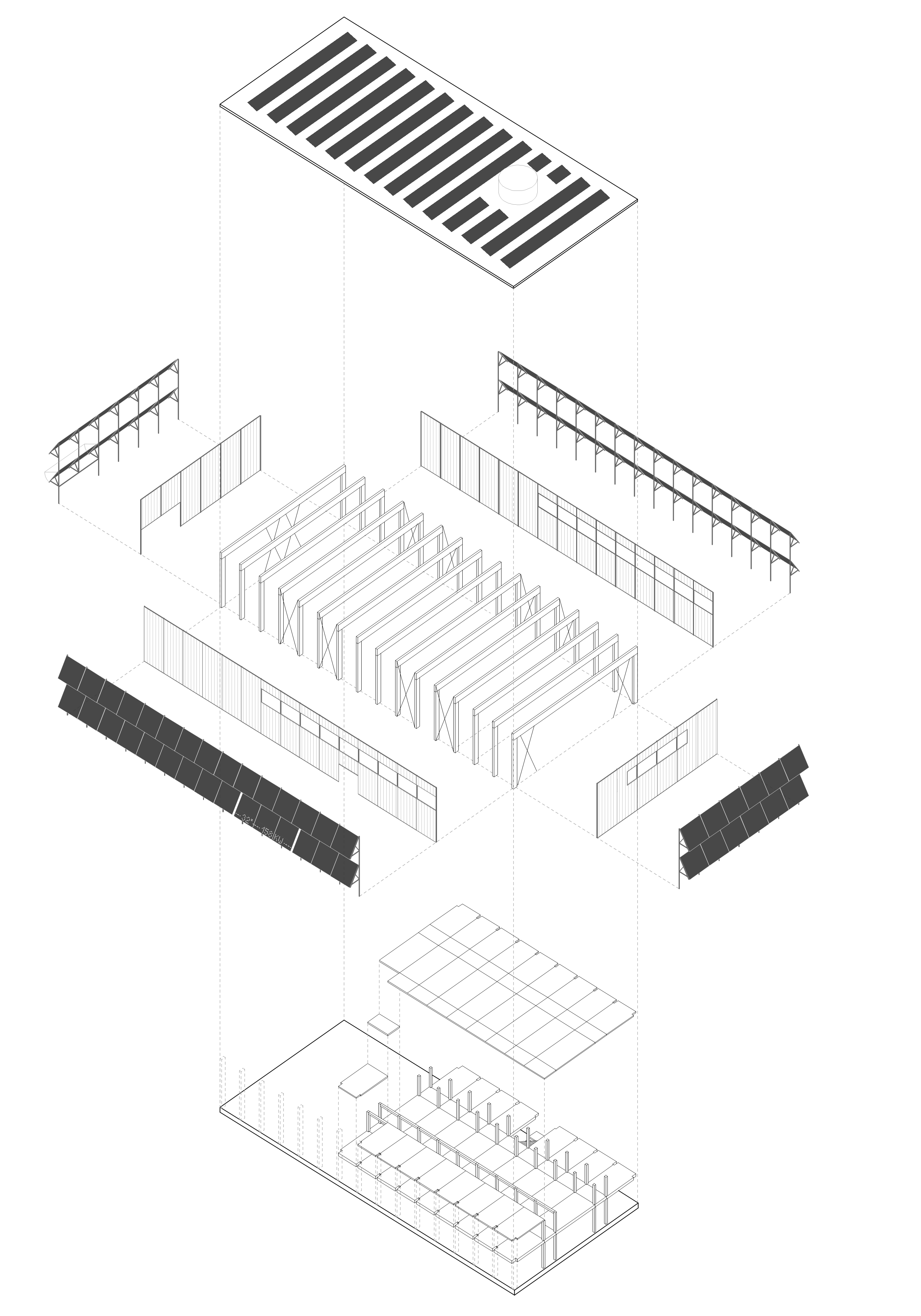 eines Seminarraums wird ein Hallentragwerk vorgeschlagen, das einen universell nutzbaren Raum schafft. Mit dessen Flexibilität